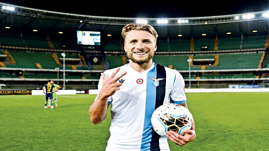 Serie A leading scorer Ciro Immobile scored a hattrick, taking his tally to 34 league goals this season, as Lazio came from behind to thump Verona 5-1 away on Sunday.