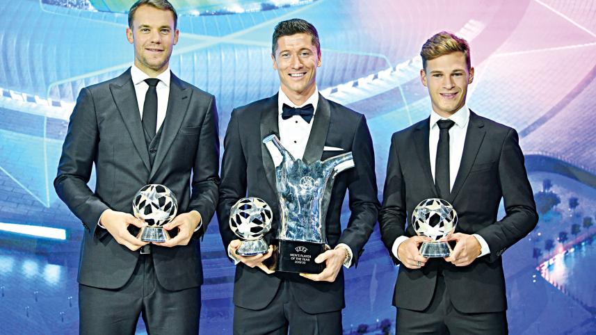 The 32-year-old scored 55 goals in 47 games, including 15 in 10 in the Champions League, while teammates Manuel Neuer and Joshua Kimmich and manager Hansi Flick also scooped individual awards. Neuer and Kevin De Bruyne had also been up for the award.