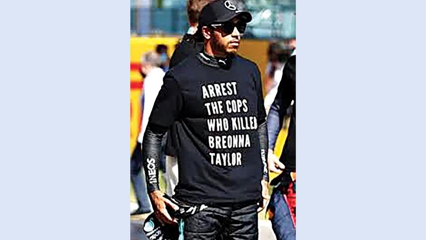 Lewis Hamilton wore a T-shirt demanding justice for Breonna Taylor before and after winning the Tuscan Grand Prix. The British F1 superstar won the incident-packed race for his 90th victory -- one short of Michael Schumacher's record -- and ended his winner's speech by saying: 'Justice for Breonna Taylor.' Hamilton's top -- which he wore when joined by some drivers taking a knee before the race and after while on the podium -- read: 'Arrest the cops who killed Breonna Taylor.' Taylor, 26, was shot dead when officers stormed her apartment in Kentucky on a search warrant for drugs in March. Three officers were involved in the raid, including Detective Brett Hankison, who was fired while the other two were put on leave. But there have been no convictions while her family have continued calling for justice. --- Agencies