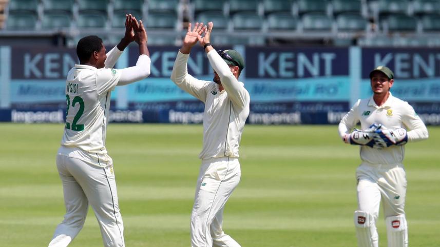 South Africa's collapse seemed unlikely when Dean Elgar (127) and Rassie van der Dussen (67) scored 68 runs off 14 overs in the first hour of the day.