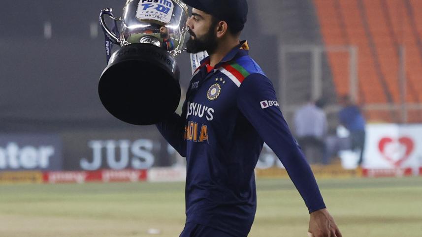Virat Kohli led from the front as India prevailed in a high-scoring decider, beating England by 36 runs in the final Twenty20 International to complete a 3-2 series victory on Saturday.