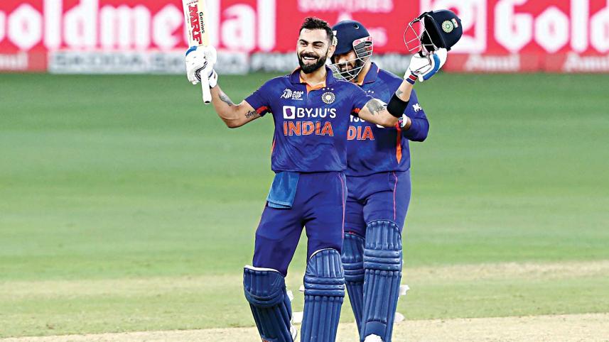 Virat Kohli hit his first international century since November 2019 with his maiden T20 ton for India as his side piled up 212-2 against Afghanistan at the Asia Cup on Thursday.