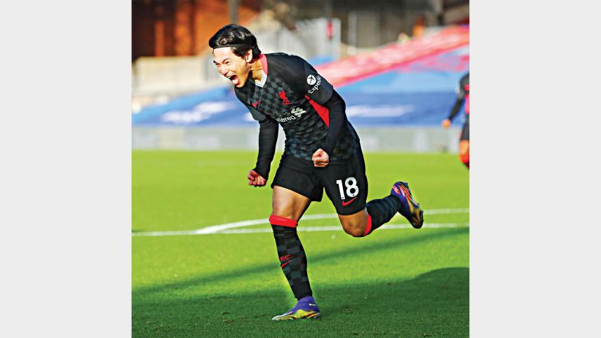 Takumi Minamino took just three minutes against Crystal Palace to net his first Premier League goal for Liverpool yesterday. Photo: TWITTER