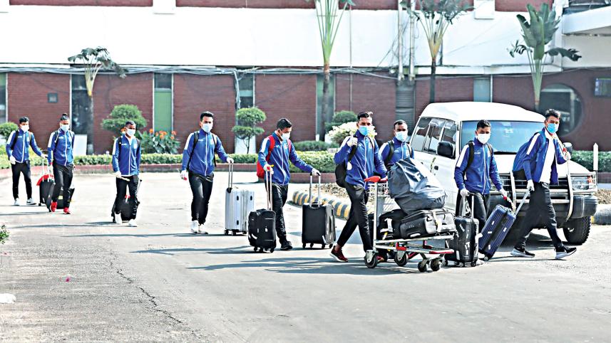 Putting behind the anxiety when some of their players tested positive for Covid-19, the Nepal national football team yesterday landed in Dhaka to play two FIFA international friendlies against hosts Bangladesh.