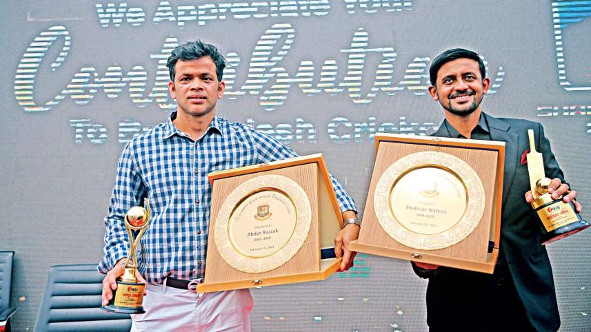 The duo announced their retirement in a simple ceremony, organised by the Cricketers Welfare Association of Bangladesh (CWAB) and Bangladesh Cricket Board (BCB), during the lunch break of the second Test between Bangladesh and West Indies. They were presented with crests during the event.