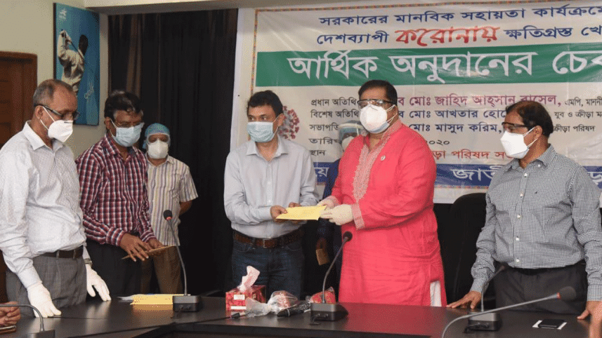 State minister for youth and sports, Zahid Ahsan Russel, disbursed cheques among officials of Dhaka District Sports Associations and surrounding 10 districts while the rest of cheques were sent to respective DSAs and Divisional Sports Associations through post, said a press release from the ministry today.