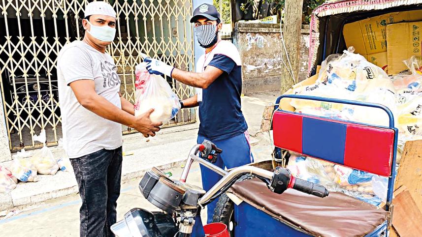The cricketer has worked tirelessly with his friends to collect funds, purchase goods, and package and deliver goods from a community centre to his hometown in an industrial area in Narayanganj.