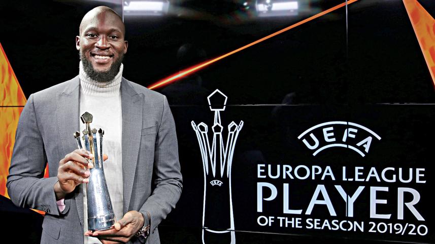 Inter Milan's Romelu Lukaku was named the Europa League player of the season for 2019-20 after the Belgian forward led the Italian side to the final with goals in every knockout round.