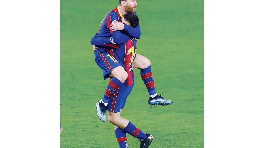 Lionel Messi came off the bench to haul Barcelona back from a goal down to a 3-2 win against Real Betis in La Liga on Sunday. Barca coach Ronald Koeman took the surprising decision to leave Messi out and in-form Frenkie de Jong out of his starting lineup. “Above all I made the rotations because the players are exhausted,” Koeman said. “I discussed resting Leo with him yesterday and we agreed we would bring him on if we needed him. He came on and changed the game, he brought life to our play,” he added. PHOTO: REUTERS