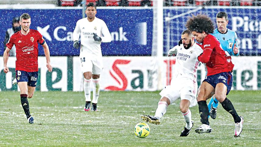 The snowstorm that blitzed northern Spain and the Spanish capital forced Real to make the journey to Pamplona a day earlier than originally planned, while they were made to wait on the icy runway at Barajas airport for over four hours.