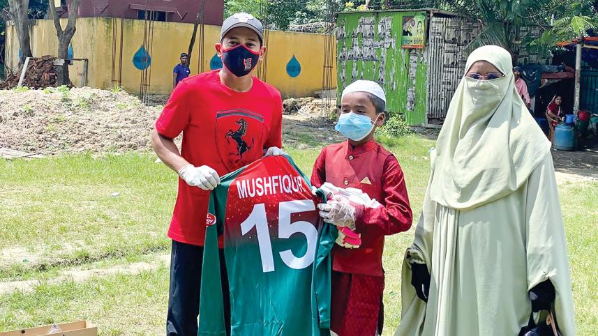 Sheikh Yaamin Sinan had made the news after photographers captured beautiful images of him playing cricket with his mother at Paltan Maidan last Friday. Yaamin's energy drew the attention of his hero Mushfiqur Rahim and the child got to meet his childhood hero. Mushfiqur himself went to the Banani field yesterday to meet up with the youngster and presented him with his No. 15 shirt along with an autographed memorabilia bat and gloves.