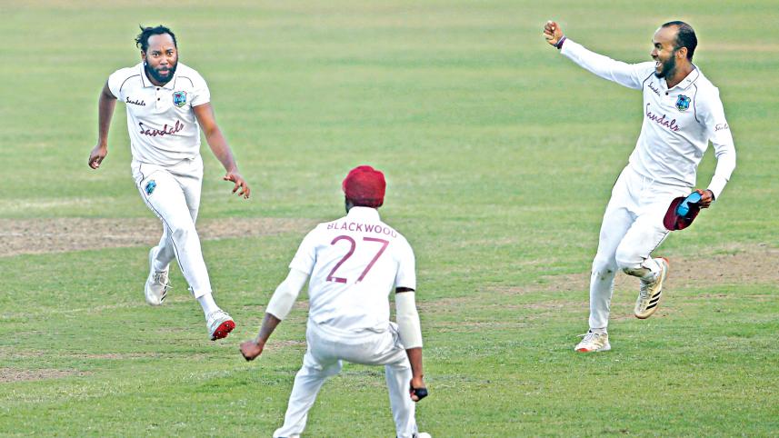 He also took a brilliant catch at slip off the bowling of Jomel Warrican, diving in front to dismiss Mehedi Hasan Miraz, the final Bangladesh wicket to fall and the trigger for the visitors' celebrations to begin.