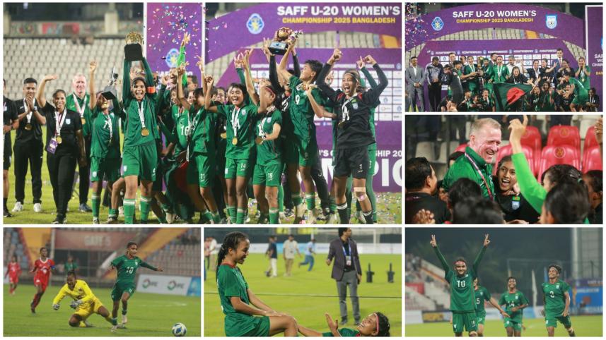 Jubilant scenes unfolded at the Bashundhara Kings Arena on Monday as Bangladesh players celebrated their emphatic 4-0 victory over Nepal in the final match of the SAFF U-20 Women's Championship. The spotlight belonged to Mosammat Sagorika, who delivered a stunning quadruple, powering the home side to yet another South Asian title. From heartfelt embraces to triumphant roars, the celebrations captured the unity and hunger that define this young team. With this latest win, Bangladesh reaffirmed their dominance in regional women's age-group football—having now clinched seven out of 13 titles since 2017. The images reflect not just a victory, but a proud continuation of a legacy in the making.