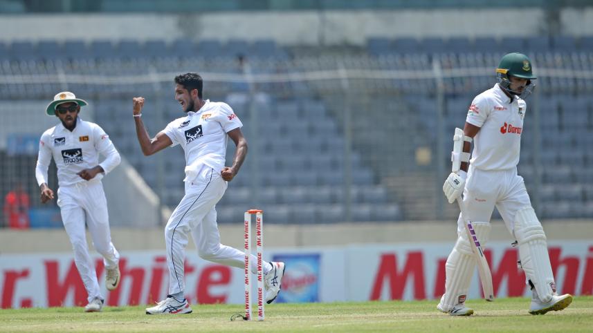 Today, Joy departed for a duck in just the second delivery of the day, late to get down to a Kasun Rajitha in-dipper. Tamim was squared up by Asitha next over as he tried to flick one away but managed to edge it to fielder at point for a four-ball duck. Bangladesh then lost skipper Mominul Haque, who too was late to a Asitha delivery and managed to nick it through to the wicketkeeper. Najmul Hossain and Shakib Al Hasan fell on back-to-back deliveries of Rajitha next over with the former missing the delivery bowled from wide of the crease and seeing his off stump disturbed while Shakib perished trying to play across the line, out leg-before.