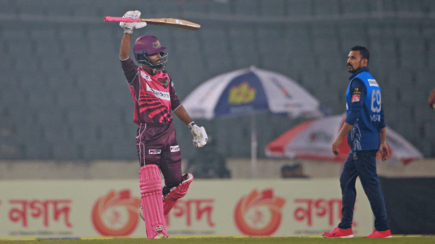 Dhaka, in reply, lost early wickets before skipper Nasir Hossain and Mohammad Mithun added 77 runs for the third wicket. Both Nasir and Mithun, however, were dismissed on forties as Dhaka never looked like chasing down the huge target and ended up being all out for 139 in 19.3 overs.