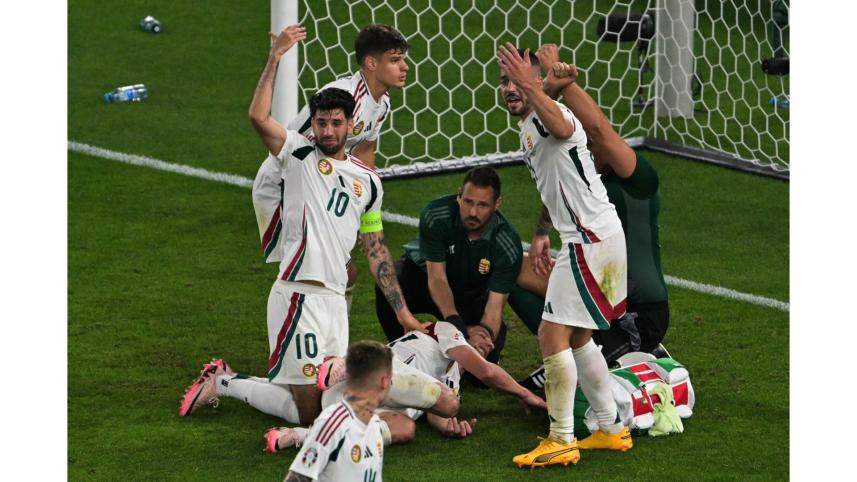 Hungary captain Dominik Szoboszlai appeared to be in tears as he consoled his stricken teammate.