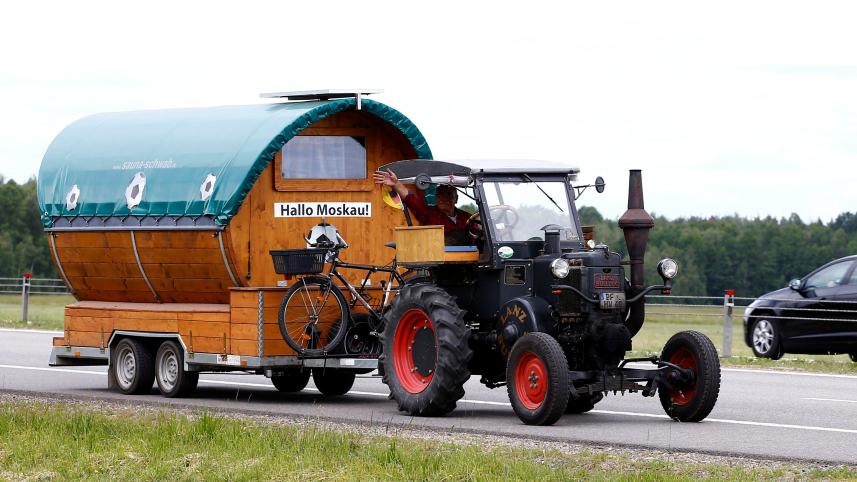 German Fan Driving Tractor to World Cup in Russia