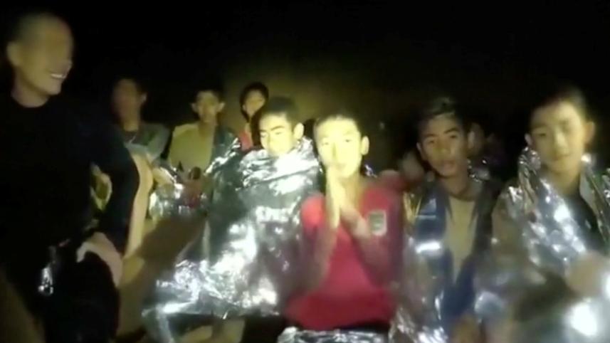 The emaciated and dishevelled "Wild Boars" were found after nine days of no contact on a small, muddy bank surrounded by water several kilometres inside the Tham Luang cave in northern Thailand.