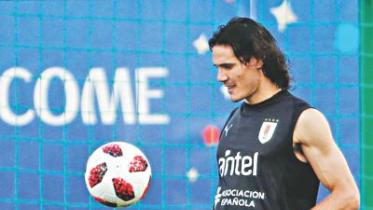 Edinson Cavani trained lightly on Thursday, but his coach would not be drawn on whether the Uruguay forward had recovered sufficiently from injury to have a chance of being fit for Friday's World Cup quarter-final with France.