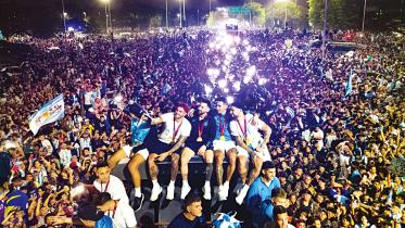 Messi and Co airlifted in helicopters as street party overflows