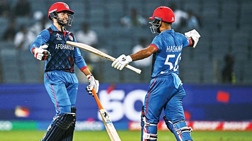 Afghanistan lost Rahmanullah Gurbaz in the first over but Rahmat Shah (62) and Ibrahim Zadran (39) calmed the nerves with a 73-run partnership.