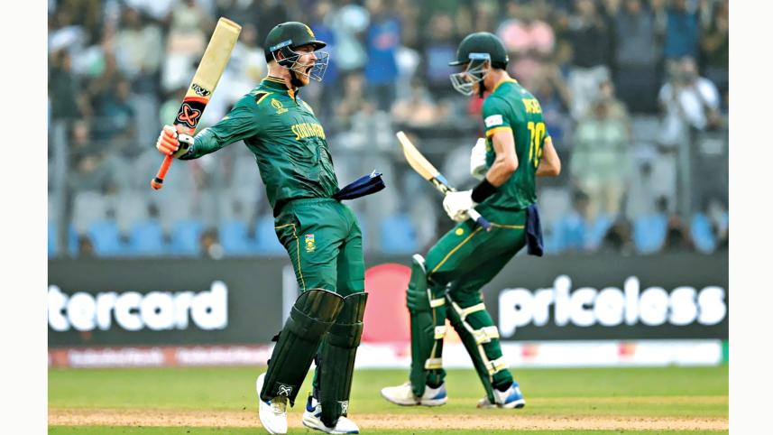 Heinrich Klaasen made a brilliant World Cup century as South Africa thrashed England by a mammoth 229 runs in Mumbai on Saturday to leave the champions' title defence hanging by a thread as they suffered a record defeat in a one-day international.