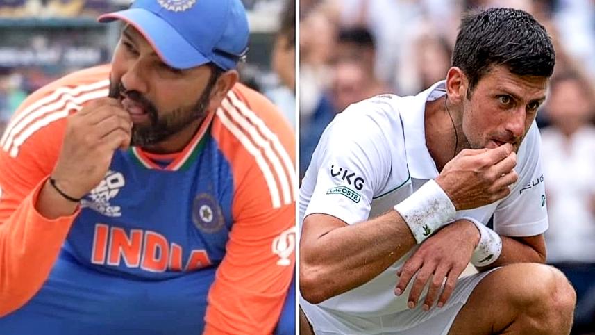 However unique it may seem, Rohit's soil-tasting act is reminiscent of tennis superstar Novak Djokovic's celebration after beating Rafael Nadal to win the Wimbledon title in 2011. Djokovic famously plucked some grass and soil from Centre Court and ate it in front of a large audience in London, including family, friends, supporters, and the president of Serbia.