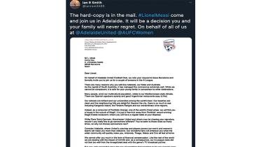 Adelaide United issued a long-shot bid to entice superstar Lionel Messi to join its ranks Wednesday, touting the remote South Australian city as a coronavirus safehaven for playing and raising his family.