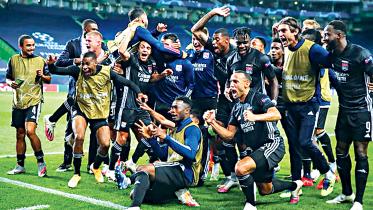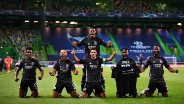 Substitute Moussa Dembele struck twice as Olympique Lyonnais stunned Manchester City with a 3-1 victory on Saturday to move into the semi-finals of the Champions League where they will face Bayern Munich.