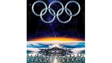 A general view shows performers dance under the Olympic rings during the opening ceremony of the Beijing Winter Olympics at the Bird’s Nest in Beijing