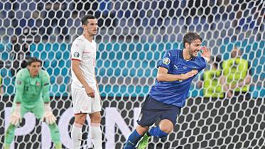 Italy became the first team to reach the knockout stage of Euro 2020 as midfielder Manuel Locatelli scored twice in a 3-0 win over Switzerland in Rome on Wednesday, while Wales moved to the brink of joining them by beating Turkey.