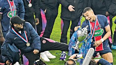Kylian Mbappe set up the first goal and grabbed one of his own as Paris St Germain retained the French Cup with a 2-0 victory over Monaco in Wednesday’s final at the Stade de France.