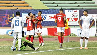Bashundhara Kings resumed their Bangladesh Premier League campaign in style, registering their biggest victory of the season with a 6-0 thrashing of Uttar Baridhara Club in the first match of the second phase at the Bangabandhu National Stadium yesterday.