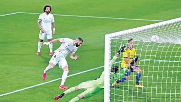Real Madrid enjoyed temporary respite from their European Super League humiliaton by thrashing Cadiz 3-0 on Wednesday to keep the pressure on Atletico Madrid at the top of La Liga.