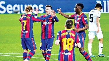 Lionel Messi gave up the chance for a hattrick on Thursday as Barcelona held off a late fightback from Getafe to win 5-2 and stay in the race at the top of La Liga.