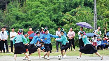 Legs stiff from long days in the rice terraces of northern Vietnam, scores of female farmers dressed in colourful cloth headbands and skirts gather on a gravel pitch for a game of football.