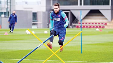 Barcelona superstar Lionel Messi trains ahead of his side’s clash with Real Sociedad tonight. Sociedad host Barca as Ronald Koeman’s men look to