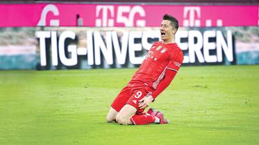 Champions Bayern Munich roared back from two goals down to beat Borussia Dortmund 4-2 on Saturday with a hattrick from Robert Lewandowski, to remain two points clear at the top of the Bundesliga.