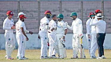 The West Indies team management seemed to be hiding their main weapon, off-spinner Rahkeem Cornwall, who took five wickets in the first innings. The big man did not bowl a single over during BCB XI’s second innings on the final day of the three-day warm-up match, which ended in a draw at the MA Aziz Stadium in Chattogram yesterday.