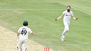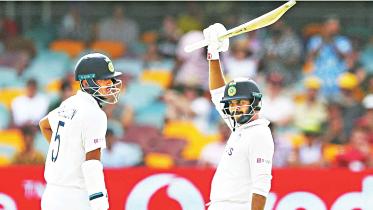 Cheteshwar Pujara absorbed 11 blows to the helmet, hands and body in a stonewalling innings of 56. Rishabh Pant was more aggressive, mixing scoops, sweeps and slogs on his way to an unbeaten 89.