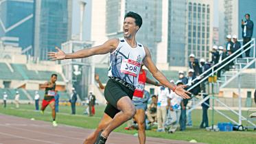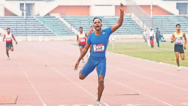 Promising sprinter Zahir Rayhan equalled a hand-timer record in the 400m race of the Bangabandhu 44th National Athletics Championships yesterday exactly two years after he broke a 32-year-old electronic-timer record in the same event of the same championship.
