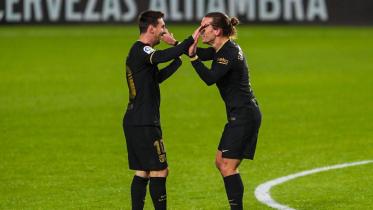 Lionel Messi and Antoine Griezmann each scored twice as Barcelona thrashed Granada 4-0 away on Saturday to win a third consecutive La Liga game for the first time this season.