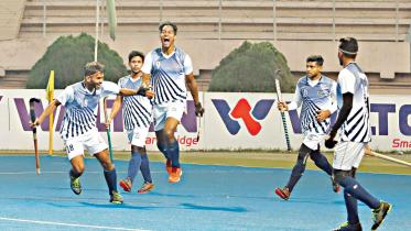A hattrick from promising striker Mahbub Hossain steered star-studded Bangladesh Navy to the title of Victory Day Hockey tournament following an emphatic 5-0 win over Bangladesh Air Force in the final at the Maulana Bhasani Hockey Stadium yesterday.