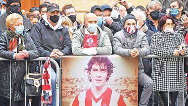 Thousands of mourners gathered in the Italian city of Vicenza on Saturday for the funeral of World Cup-winning Italy forward Paolo Rossi. The coffin