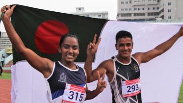 Rakibul Hasan and Shirin Akter of Bangladesh Navy bagged gold medals in the 200m sprint events on the concluding day of the Sultana Kamal-Olila Group 16th National Summer Athletics Championship at the Bangladesh Army Stadium yesterday.