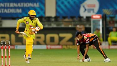 Ravindra Jadeja turns in a fine all-round show to help Chennai Super Kings to a 20-run win over Sunrisers Hyderabad in their Indian Premier League match at the Dubai International Stadium