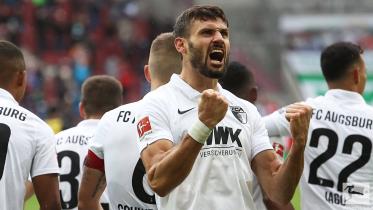 Bundesliga title hopefuls Borussia Dortmund suffered a blow in a 2-0 defeat at Augsburg on Saturday, surrendering without a fight as Daniel Caligiuri set up the first goal and scored the second in his 300th league game.