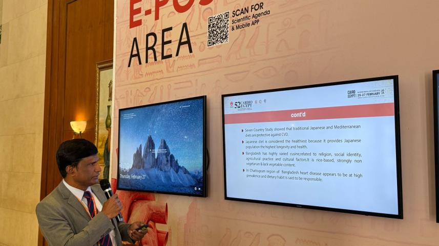 It is worth mentioning that research on diet and heart disease is limited in Bangladesh, making this presentation a pioneering effort for any researcher from the country. Dr Das emphasised the need for nationwide research on dietary habits and their impact on heart disease to address the rising incidence of cardiovascular diseases in Bangladesh.