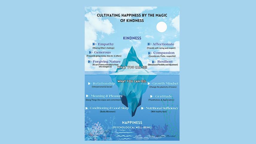 Greater happiness is associated with the broader concept of well-being. It includes mainly meaningful relationships, a sense of purpose, and better physical health. Eventually, kindness emerges as the most essential recipe for happiness. Moreover, happiness is the ultimate goal that most people strive for. Besides technological advancement and economic growth, there is an increasing call to prioritise kindness and acknowledge the kind-hearted individuals around us.