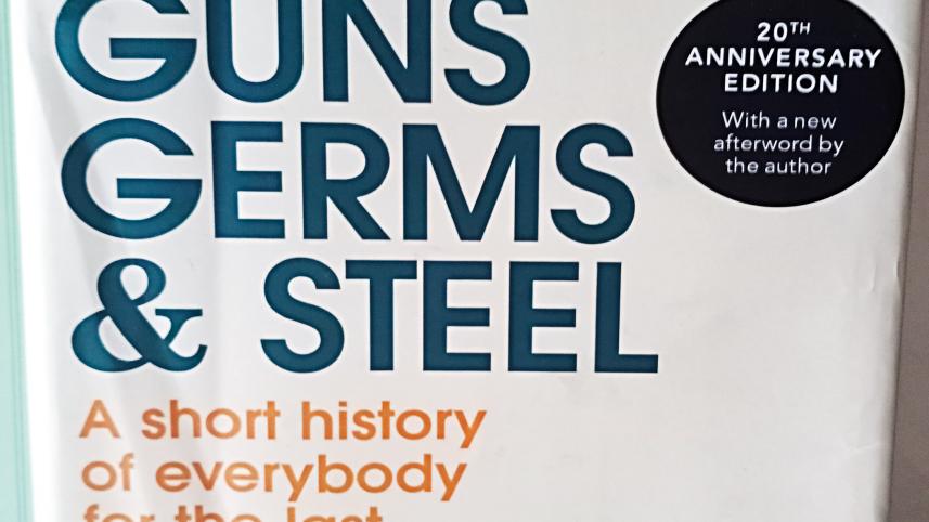 Diamond goes from food to guns germs and steel in the third section in which he covers the evolution of germs, writing, technology, government and organized religion.